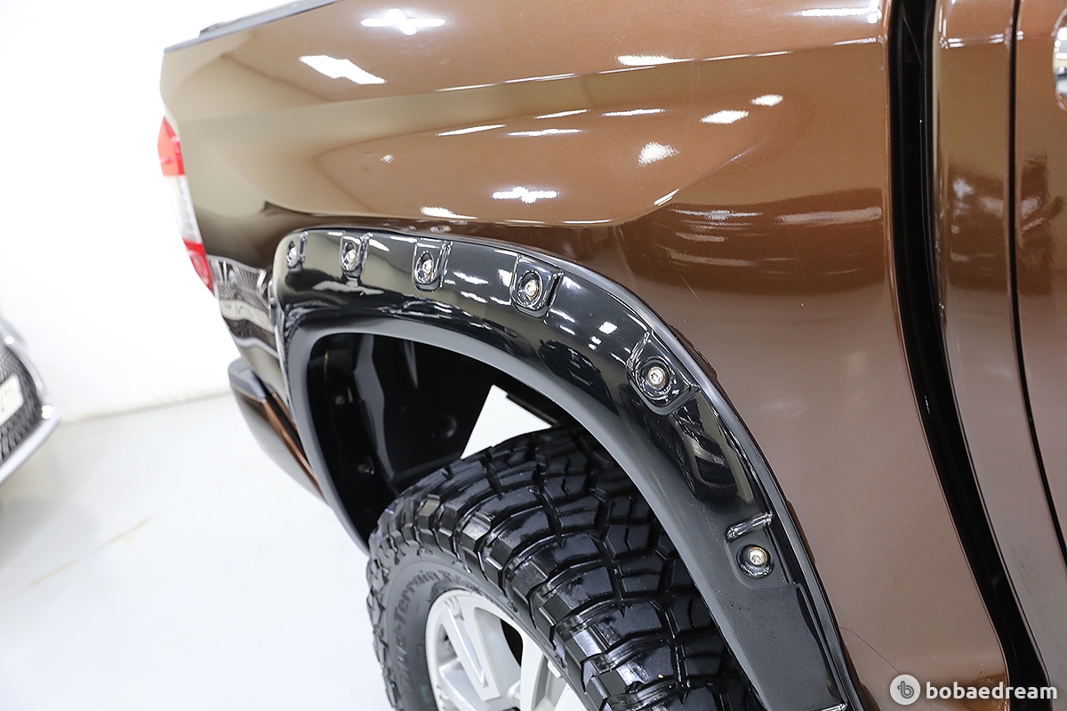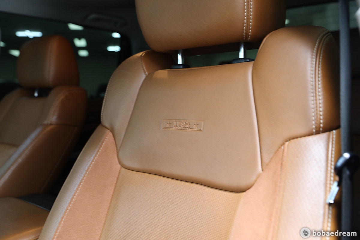 강렬한 존재감을 드러낸다. 실내는 고급 세단에 버금가는 수준의 마감으로 꾸며져 있으며, 특히 새들 브라운 가죽