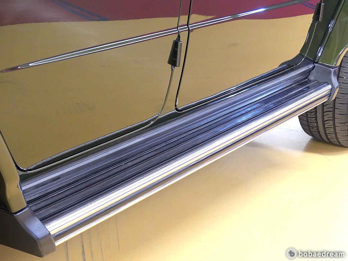 독특한 측면 배기가스가 있다. 구식의 교습 신호는 거의 까만 외관과 잘 어울리기 위해 검은 색조를 띠었다.